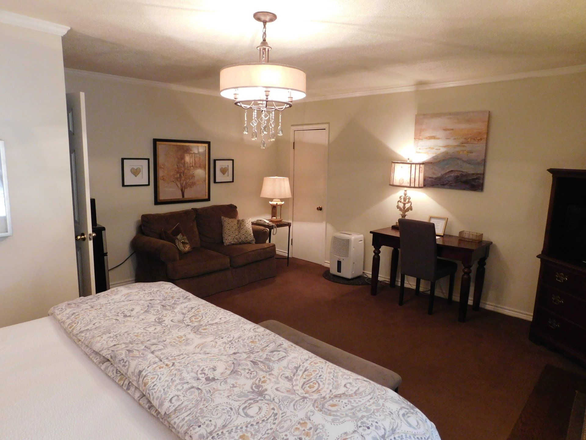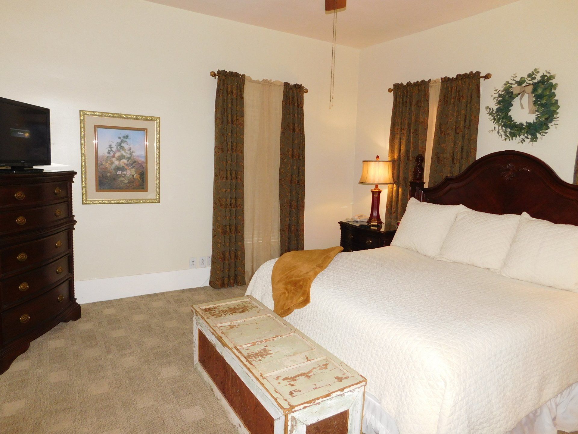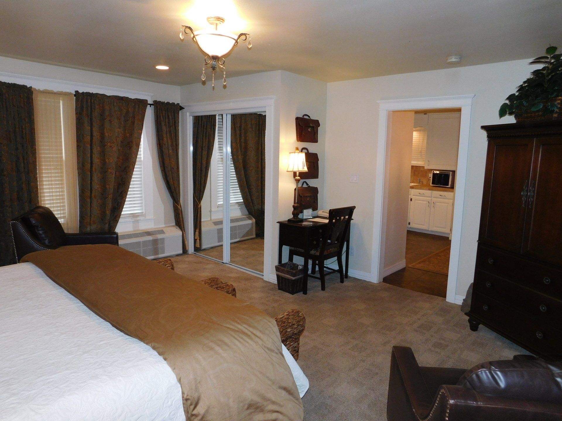 Room #31 is larger than the standard king. It includes a love seat, closet, antique writing desk and comfortable living area beyond the bed.