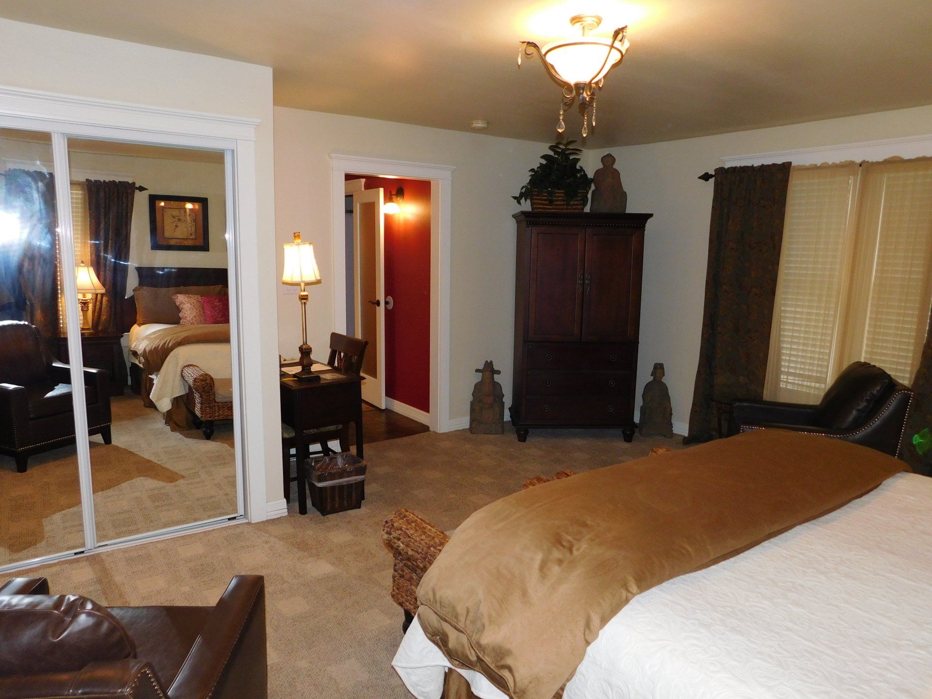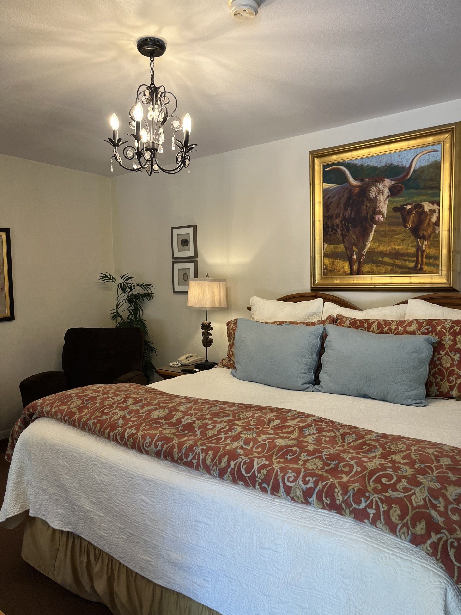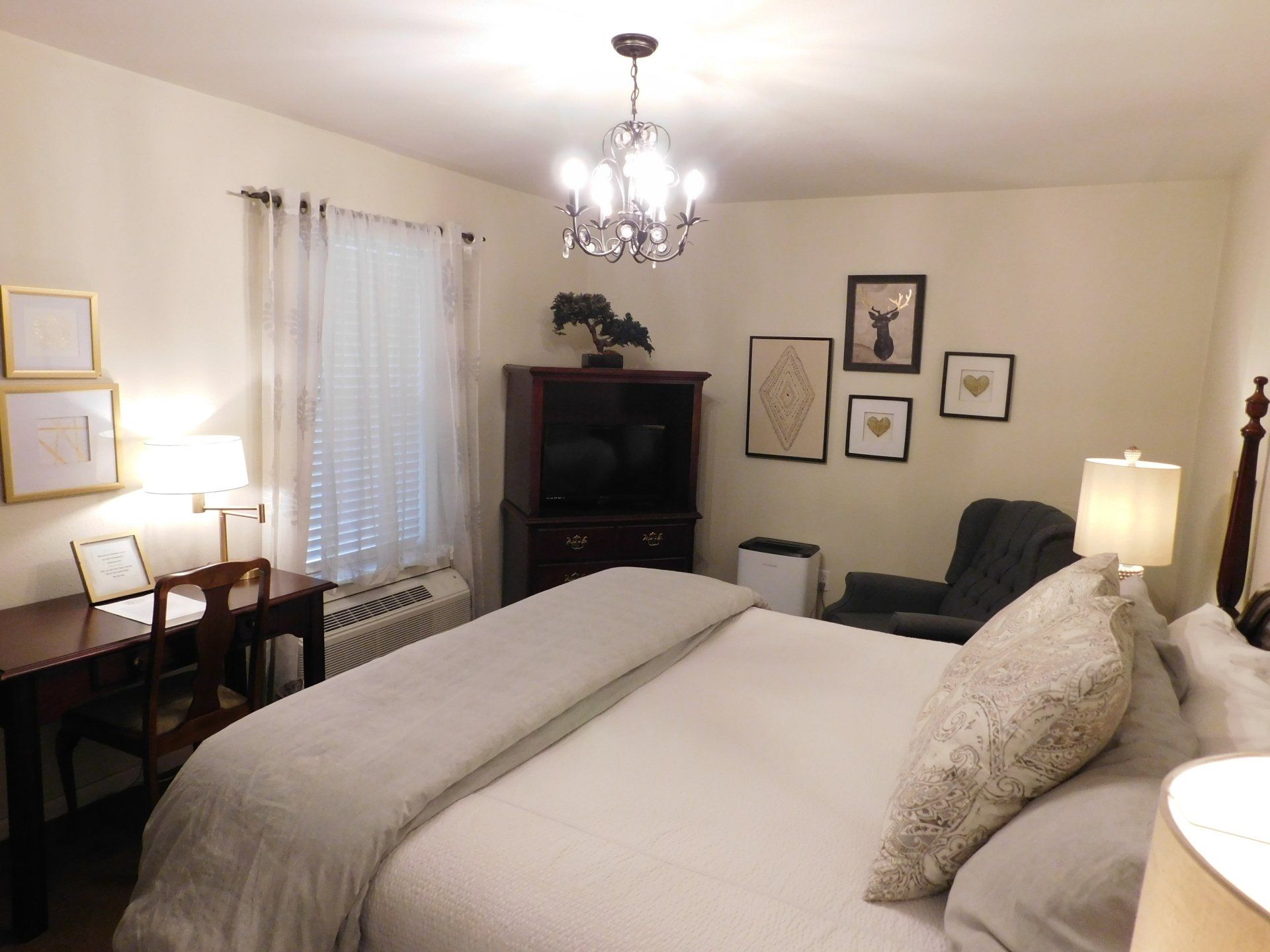 Room #31 is larger than the standard king. It includes a love seat, closet, antique writing desk and comfortable living area beyond the bed.