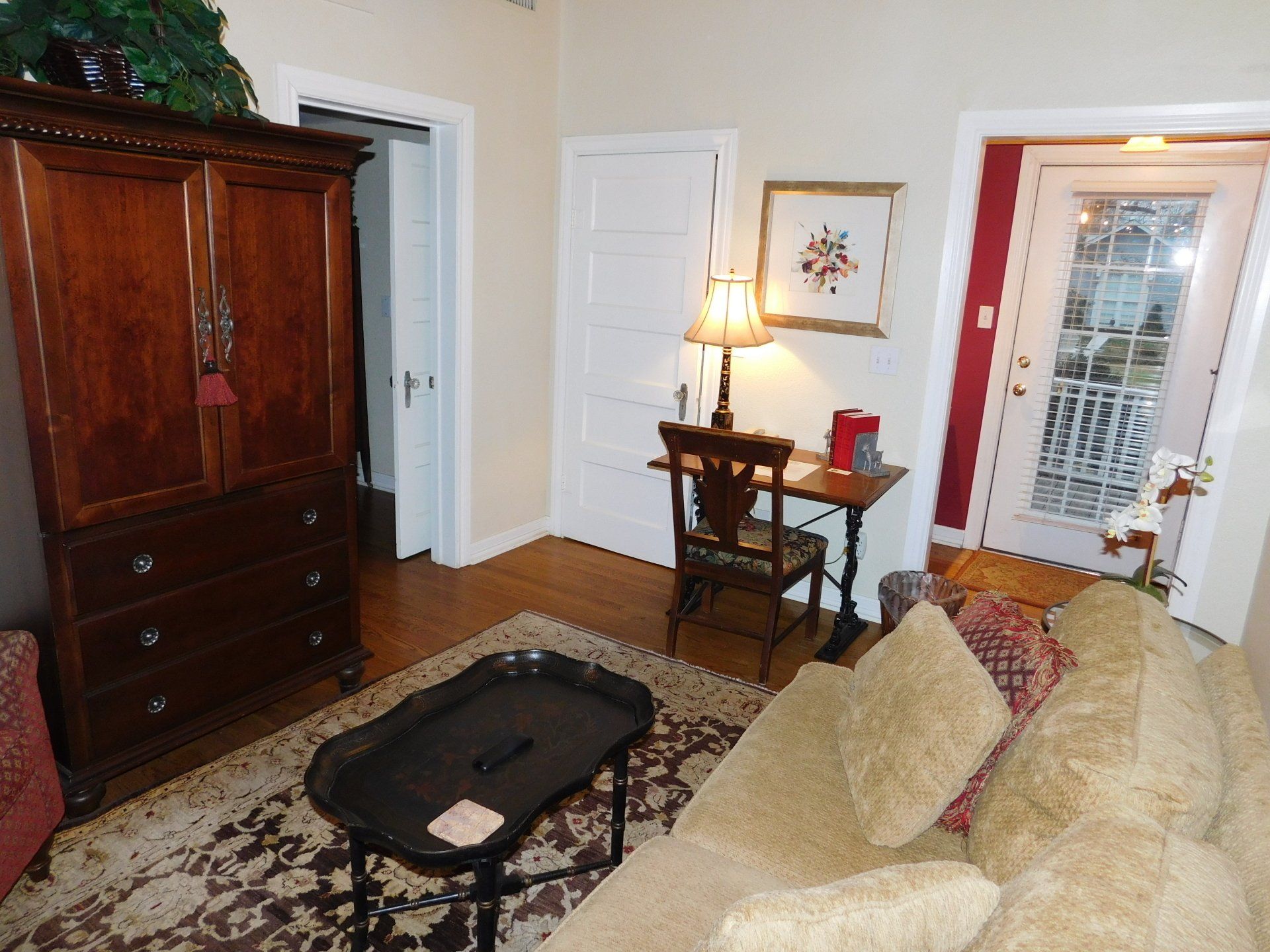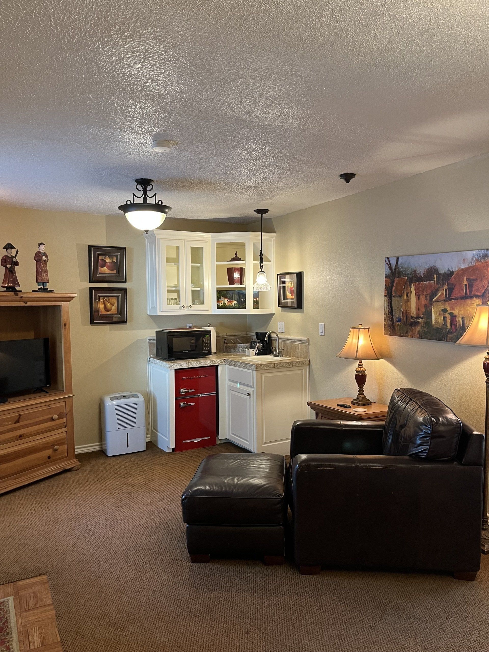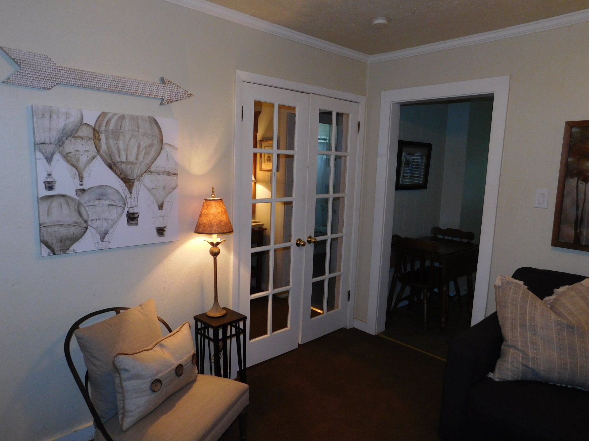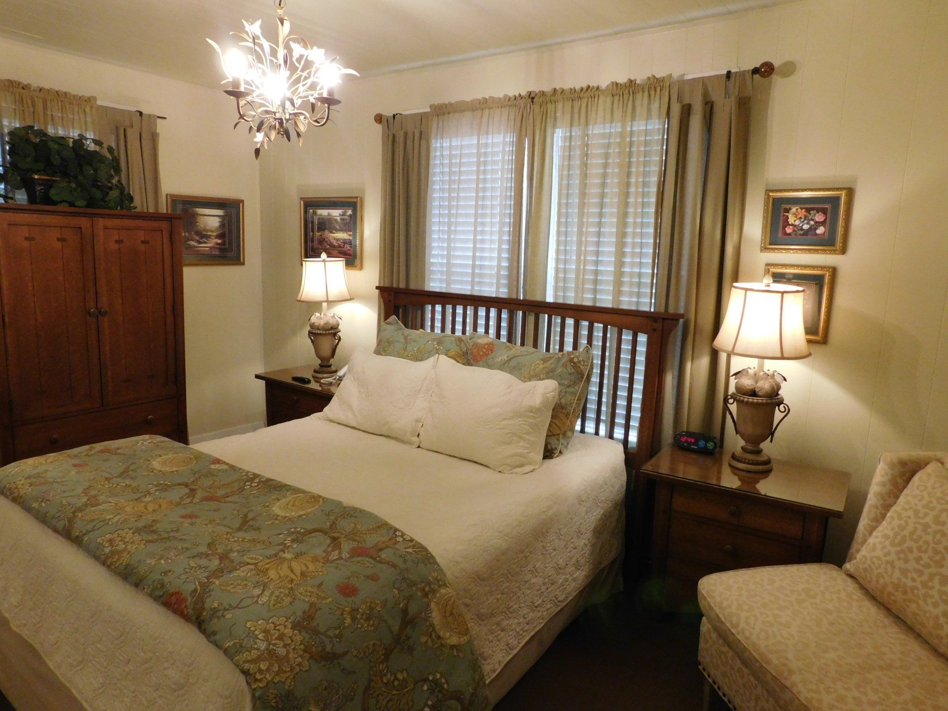 This room is similar to a one bedroom apartment; a fully furnished eat-in kitchen, living room with a queen sleeper sofa and bedroom with a queen size bed separated by French Doors. The bedroom includes a large desk with additional TV and closet. The large bathroom has a tub shower combination, ample storage and pedestal sink. In addition, this is a stand-alone cottage.