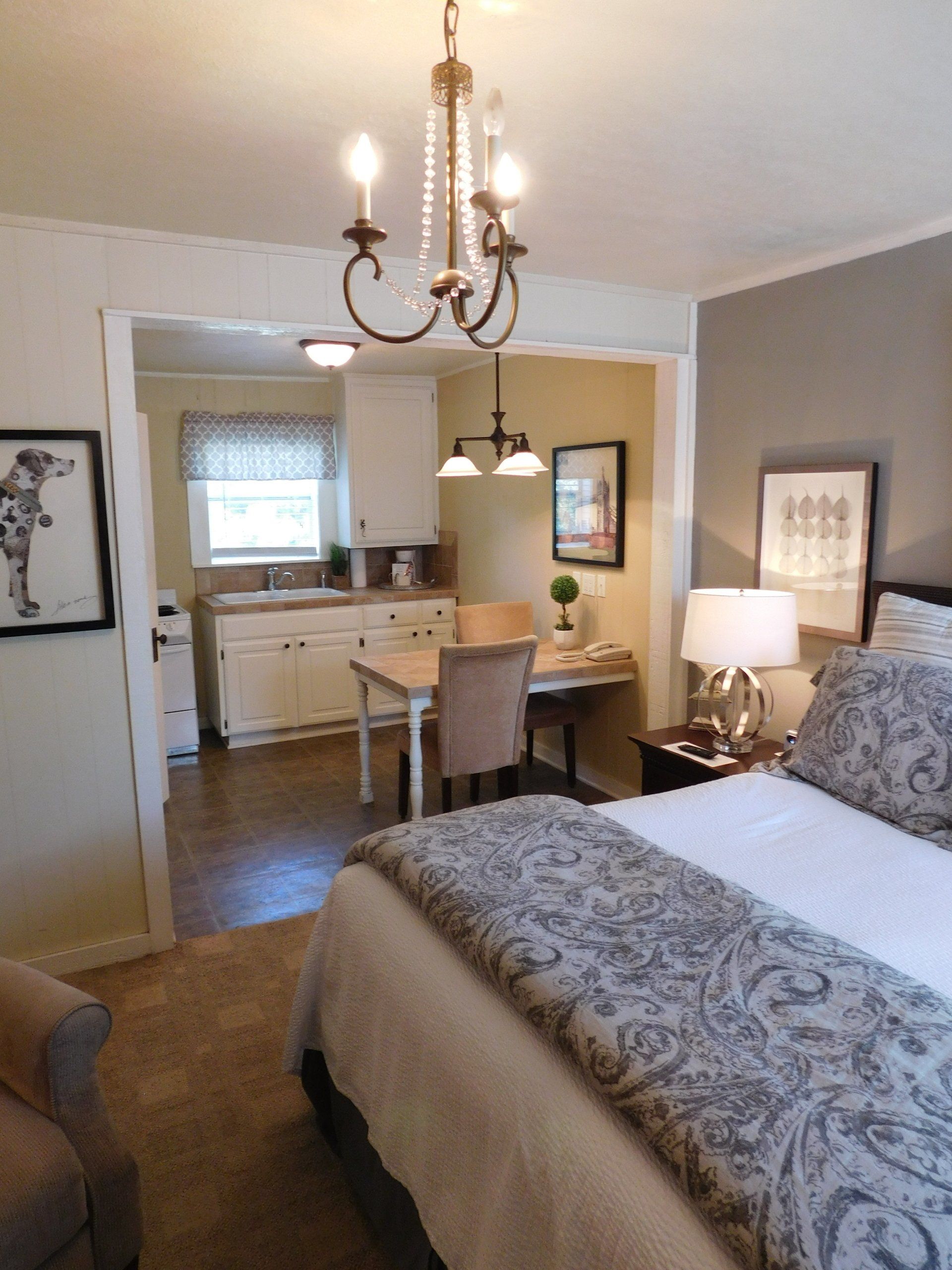 In addition to motel rooms and due to the historic nature of our property, Rainbow Courts Motel has one two bedroom apartment that we typically refer to as a Corporate Apartment. This apartment is intended for extended stay a bit longer that what typical hotel room would be used for such as corporate relocations, temporary housing, etc. They are completely furnished with the same qualities as the motel rooms but considerably larger with washers and dryers. All utilities are included including High Speed Wireless Internet with no utility deposits required. They receive housekeeping service twice each week.